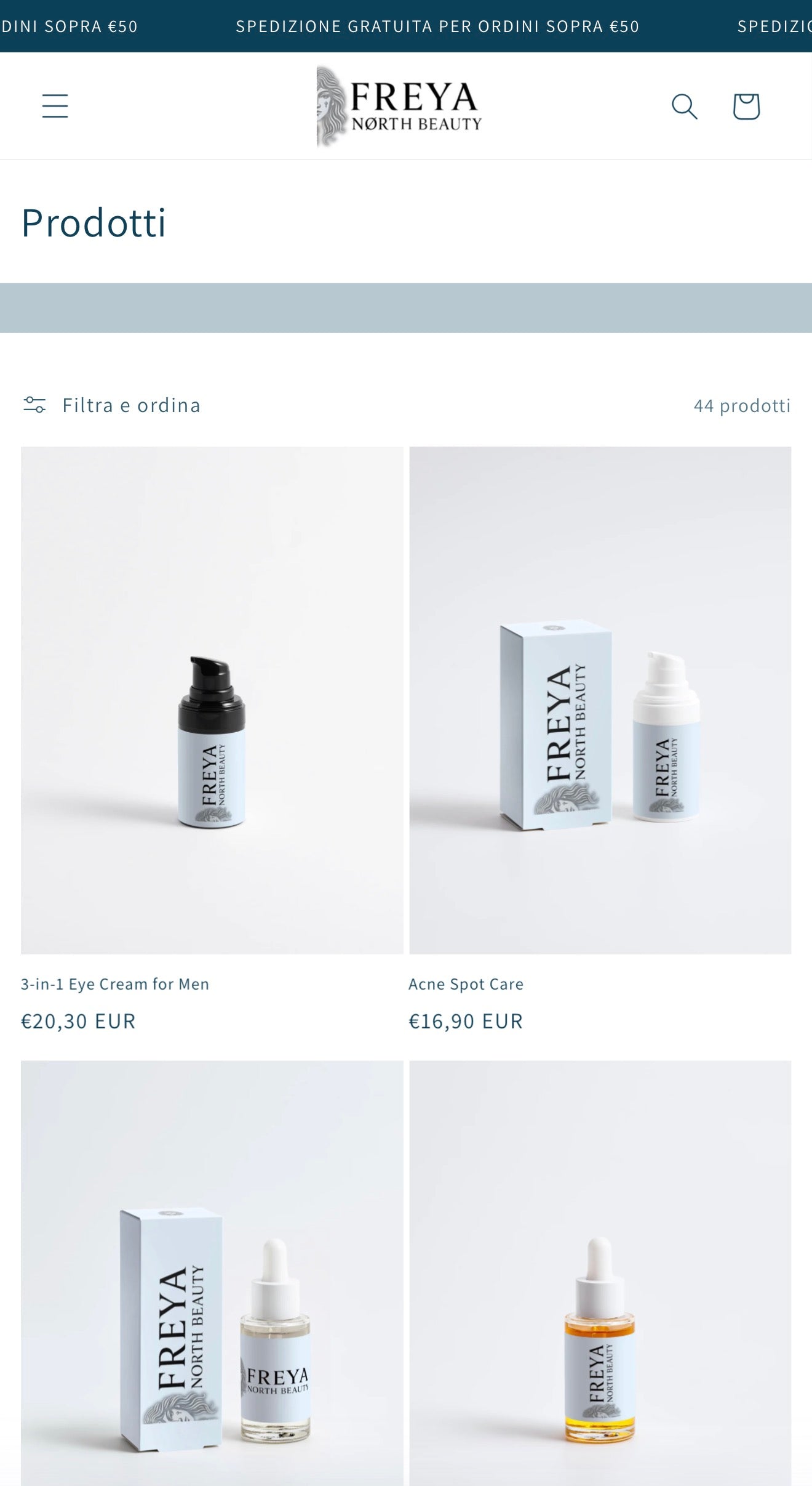 E-commerce e identità visiva per un brand di skincare ispirato alla bellezza nordica.